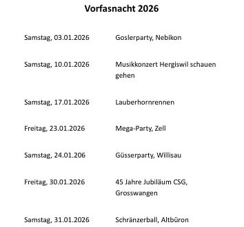Guggifäscht 11. Februar 2026 / Wie dürfen auf ein tolle Wochenende voller schönere Begegnungen und Gesprächen zurück schauen. Dank euch allen durften wir 2 gelungene Feste feiern und freuen uns scho jetzt auf das nächste Jahr.